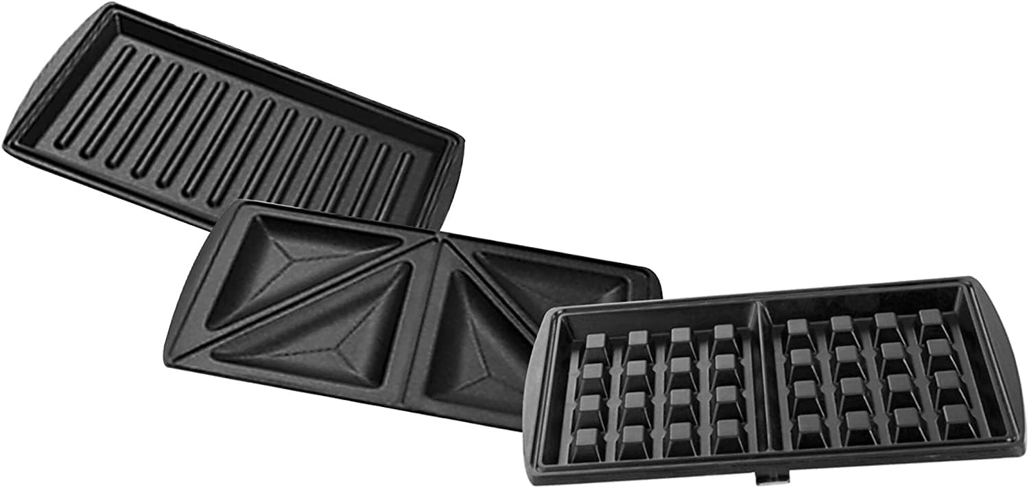 ماكينة صنع الساندويتشات من بلاك اند ديكر، 750 واط، بفتحتين غير لاصقة، اطباق شواء وافل قابلة للتبديل 3 في 1، اضواء مؤشرة، وجبات سريعة وسهلة، تصميم مضغوط، اسود