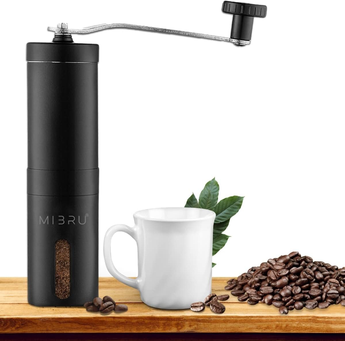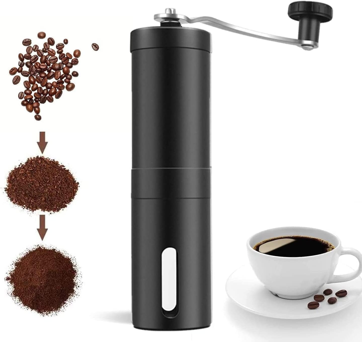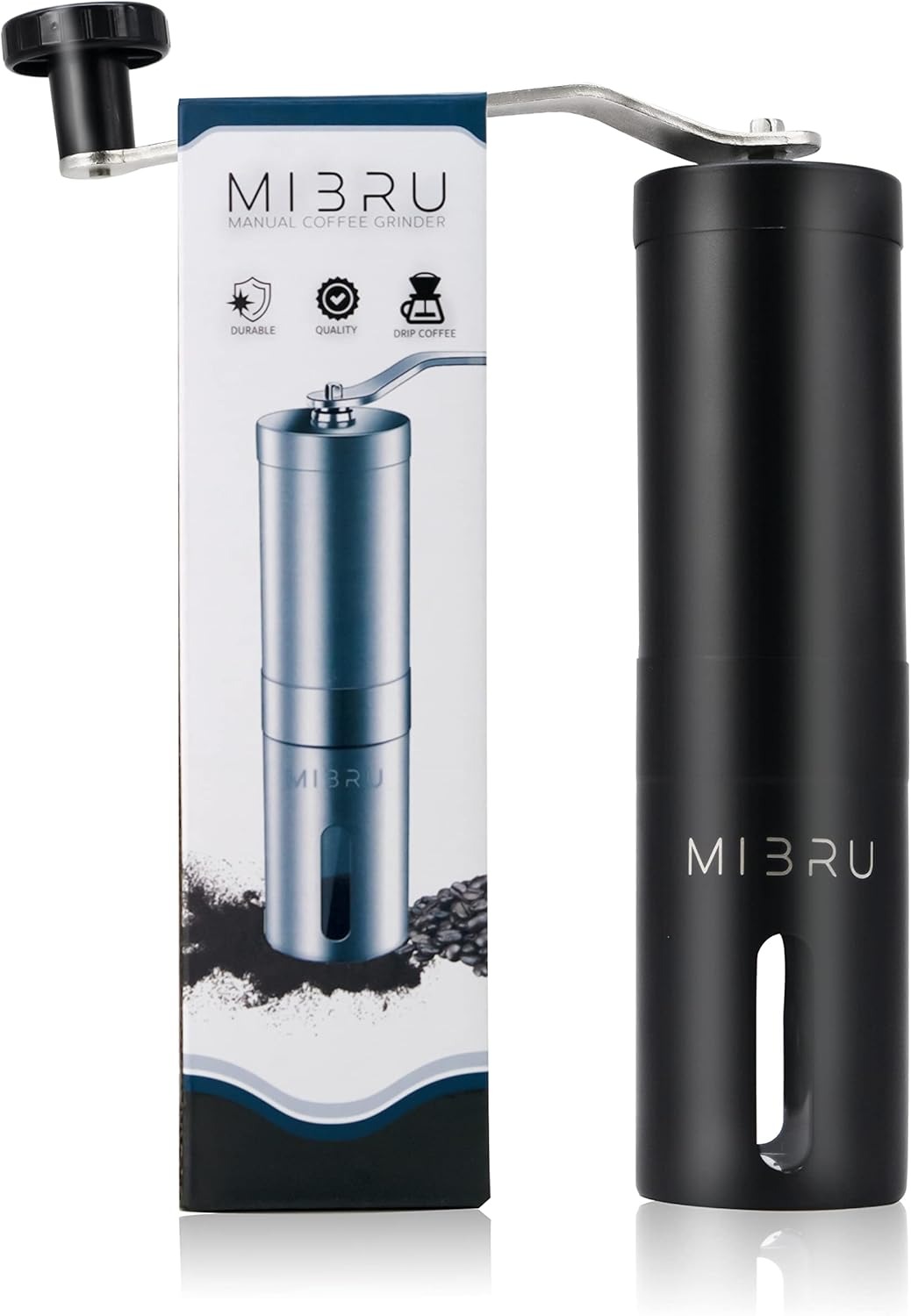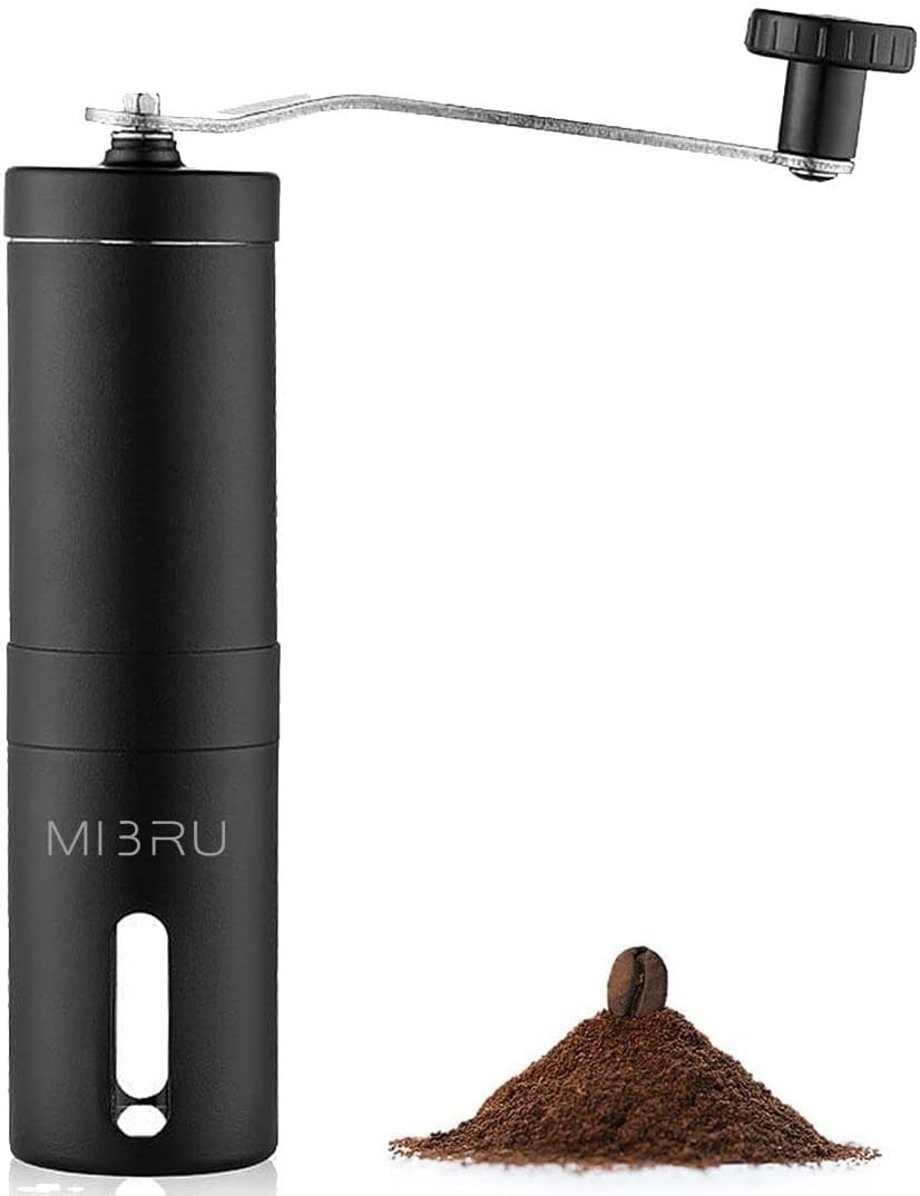 مطحنة قهوة يدوية من ميبرو، مطحنة قهوة محمولة مع اعداد قابل للتعديل من الستانلس ستيل، مطحنة قهوة لتنقيط القهوة والاسبريسو للمنزل، (لون اسود مات)
